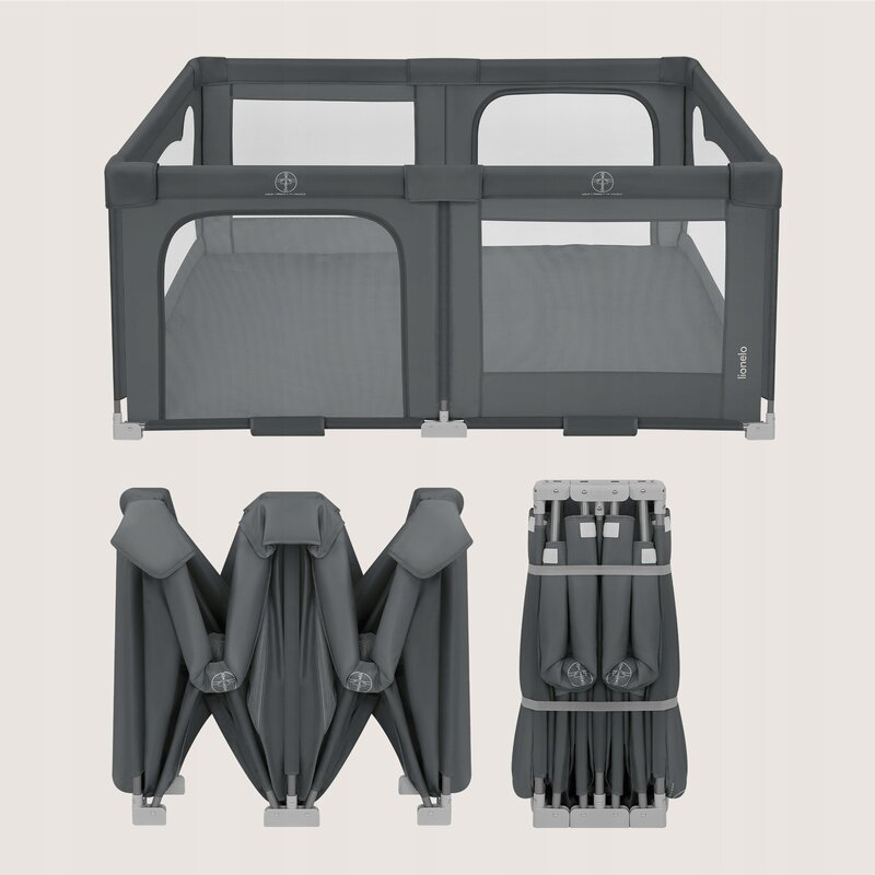 Tarcul de joaca poate fi pliat cat ai clipi – nu necesita unelte, nu este nevoie de efort. Acest lucru se datoreaza mecanismului convenabil Easy Fold, care permite deplierea si plierea rapida la o dimensiune compacta prin simpla apasare a butoanelor de blocare.