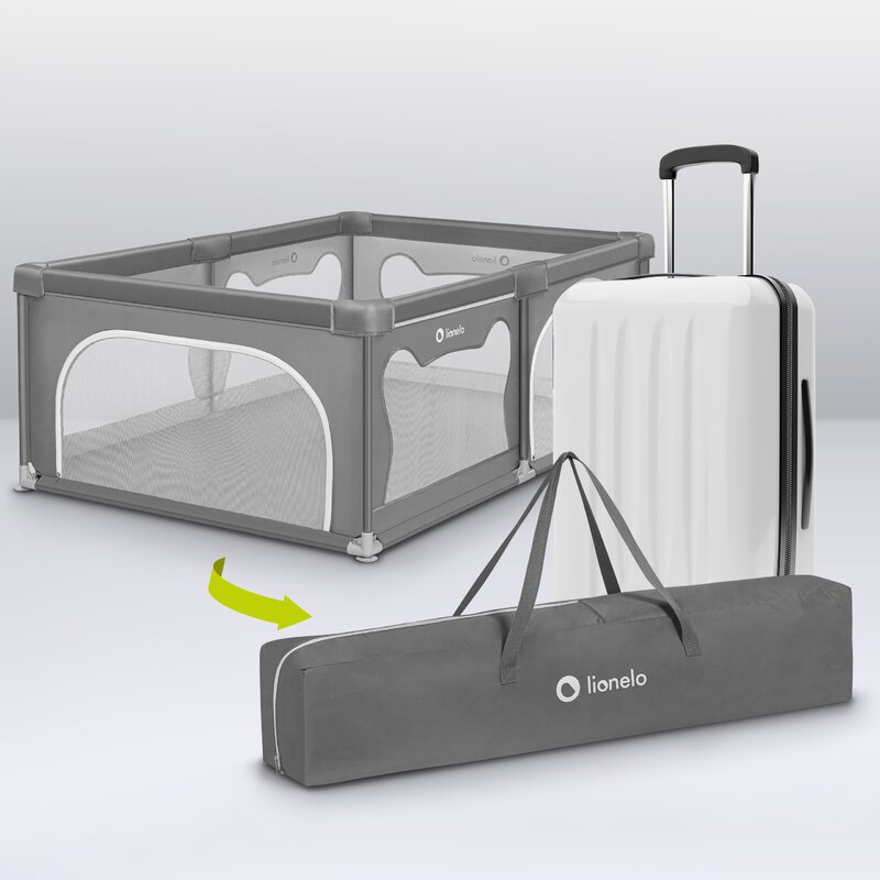 Lionelo Tarc de joaca copii, Lionelo, Willow, 127 x 187 cm, Pliere compacta, Include geanta de transport, Din plasa, Cu doua intrari laterale si fermoar, Cu ventuze pentru stabilitate, Conform cu EN 12227:201