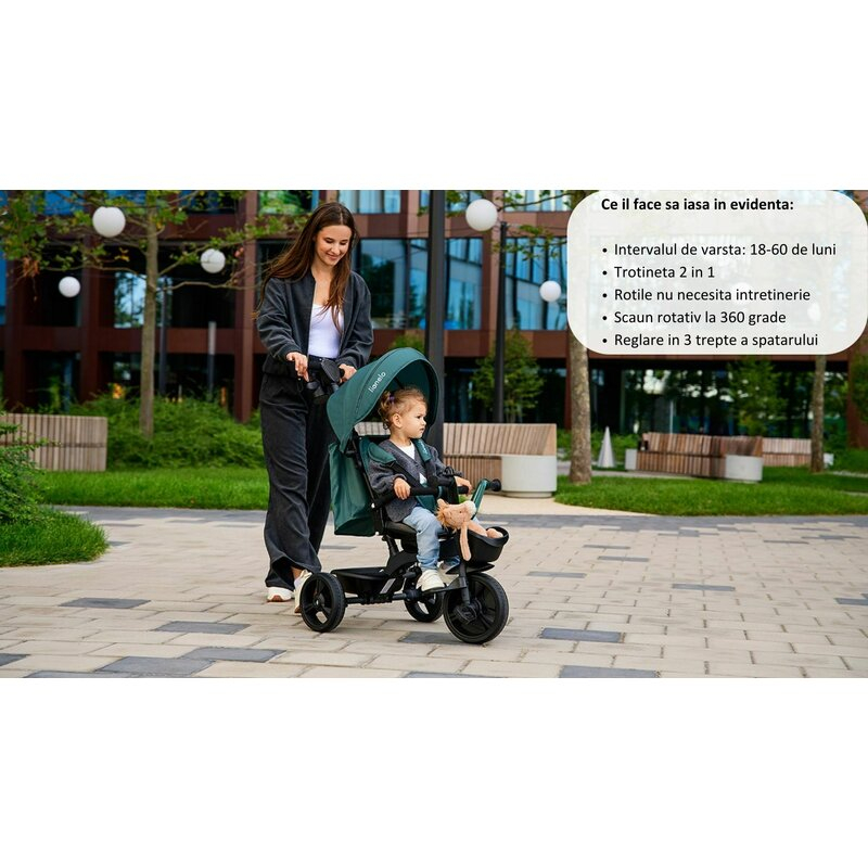 Lionelo Tricicleta copii, Lionelo, Kori, Ultrapliabila, Multifunctionala, Cu suport de picioare, Control al directiei, Scaun reversibil, Rotire 360 grade, Conform cu standardul european de securitate EN71, Bl