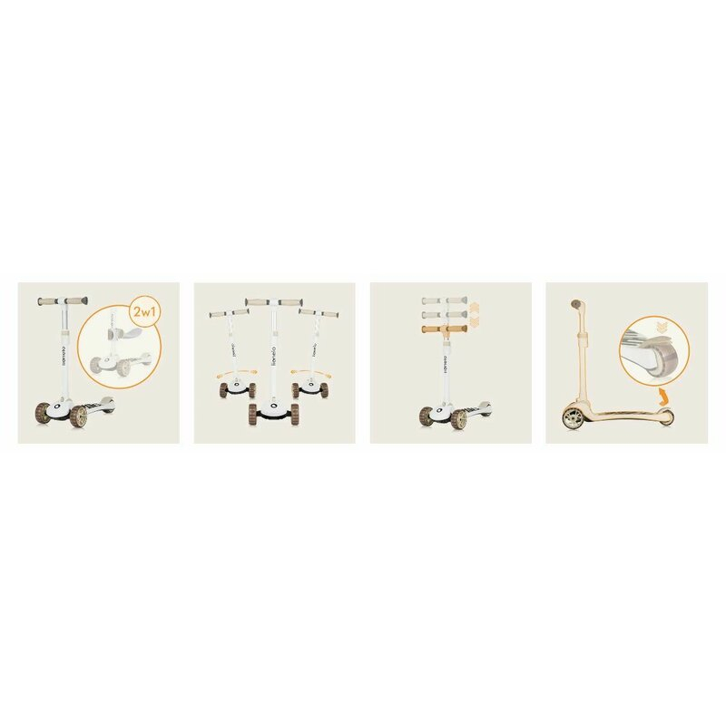Produsul se adapteaza dezvoltarii copilului tau in timp, transformandu-se dintr-o jucarie pe trei roti pentru copii mici intr-o trotineta de echilibru pentru copiii mai mari.