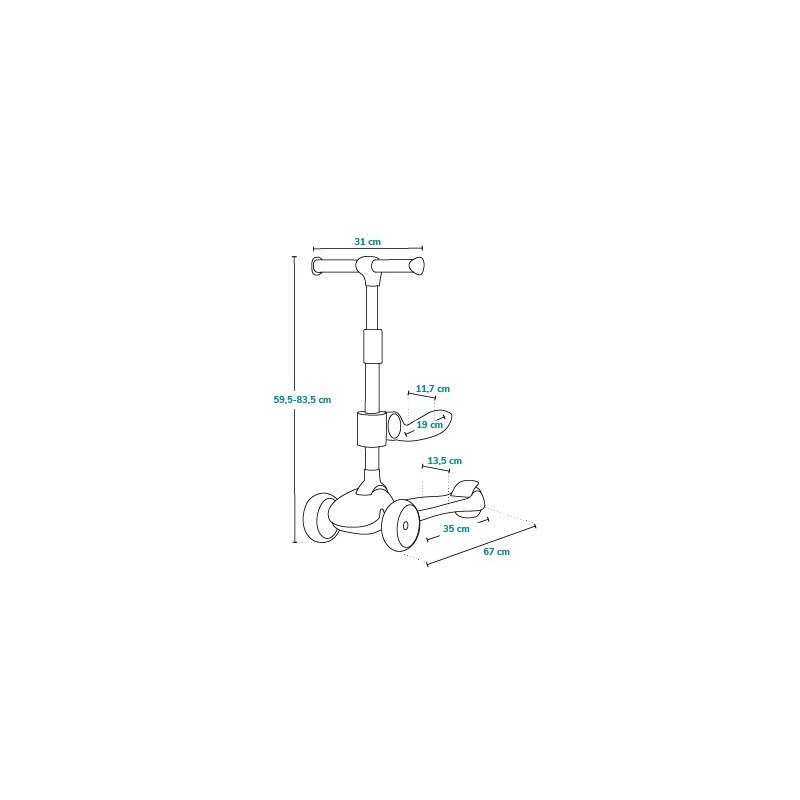 Inaltimea ghidonului poate fi reglata usor si infinit pe o gama larga. Aceasta functie asigura o ajustare precisa la inaltimea curenta a copilului. Astfel, produsul se potriveste atat copiilor mai mici, cat si celor mai mari, fie ca stau asezati sau in picioare.