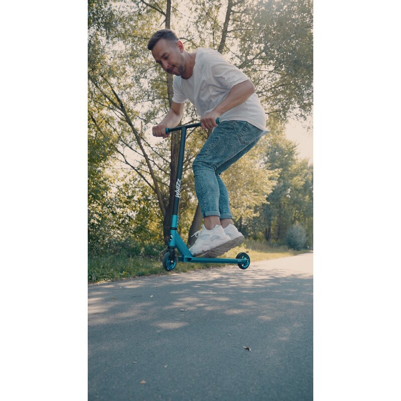 O trotineta freestyle Lionelo Whiz cu sistem de compresie HIC asigura un confort ridicat de condus. Greutatea sa redusa - doar 3,29 kg - permite o plimbare rapida si va ajuta sa sariti. O clema cu patru orificii si o platforma larga (100 mm) garanteaza stabilitatea, ceea ce este important atunci cand circulati pe sine si borduri.