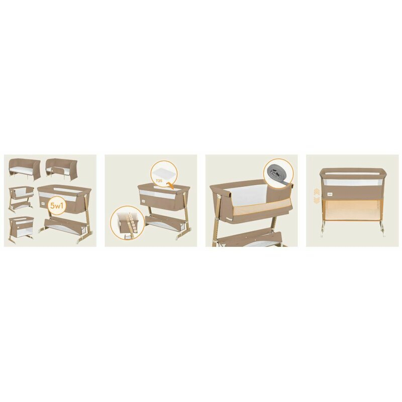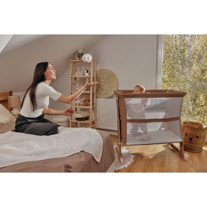 Cand doresti sa te odihnesti alaturi de copilul tau, deschizi panoul lateral si utilizezi curelele de montare incluse pentru a crea un patut stabil cu acces facil la micut. Lungimea picioarelor poate fi ajustata pentru a se potrivi cu inaltimea patului parintilor, pentru un fit optim.