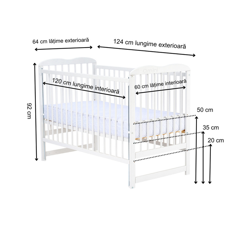 ✔ Dimensiunea ideala pentru salteaua acestui patut este de 120/60 cm.