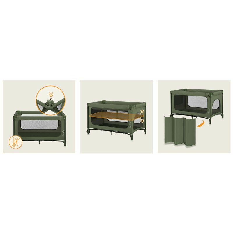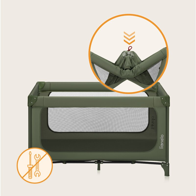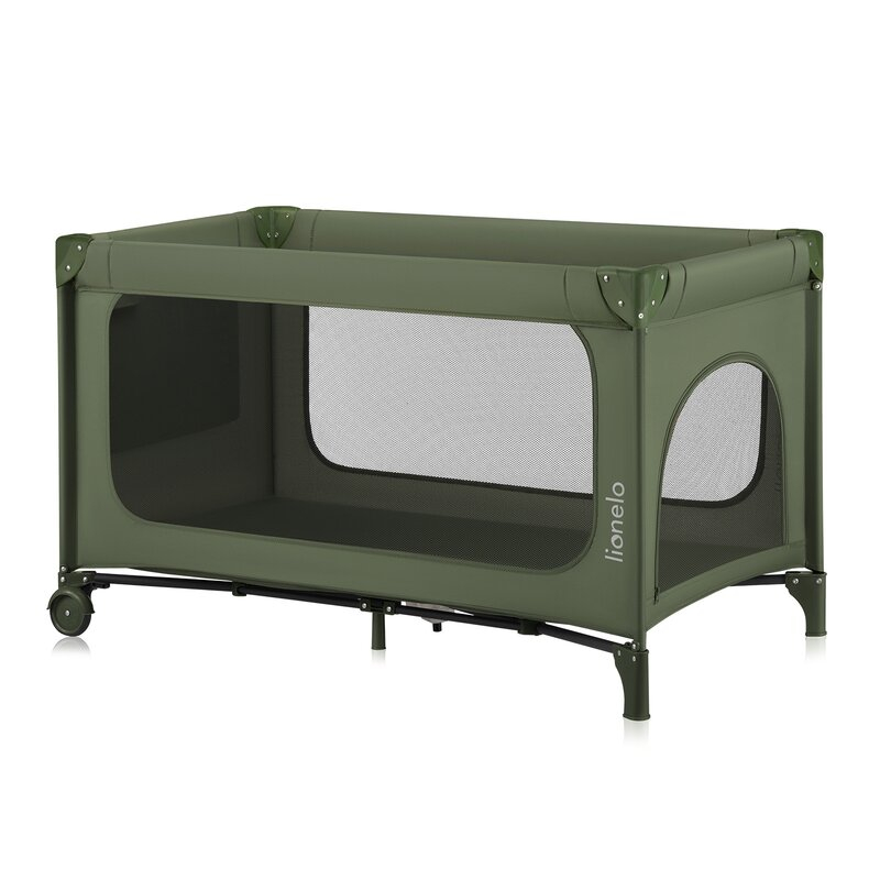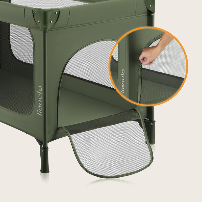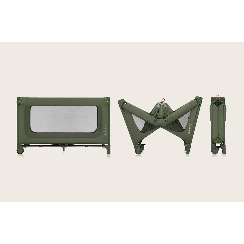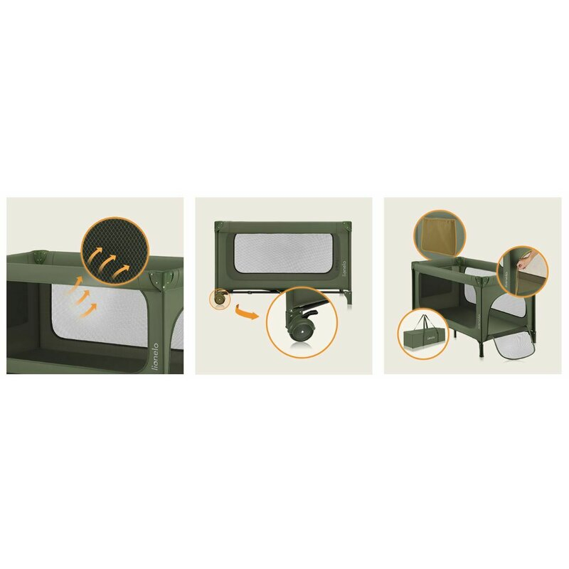 Lionelo Patut pliant, Lionelo, Jasmin Easy Fold, Pana la 15 kg, Usor de pliat, Cu doua nivele, Cu saltea ergonomica T25, Cu intrare laterala cu fermoar, 2 roti cu frana, 123 x 67 cm, Conform cu EN 716, 0-36 l