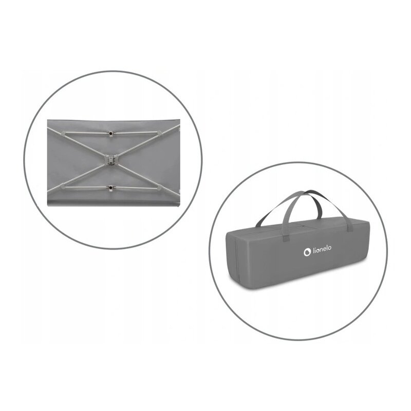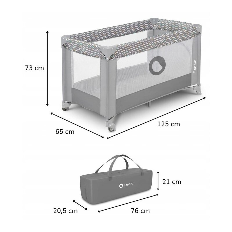 Lionelo Patut pliant, Lionelo, Stefi, Cu un nivel, Cu intrare laterala cu fermoar, 2 roti, 120x60 cm, Conform cu standardul european de securitate EN 716, Grey