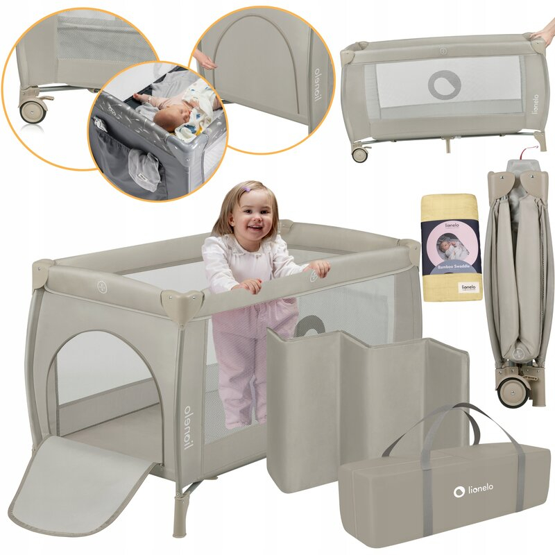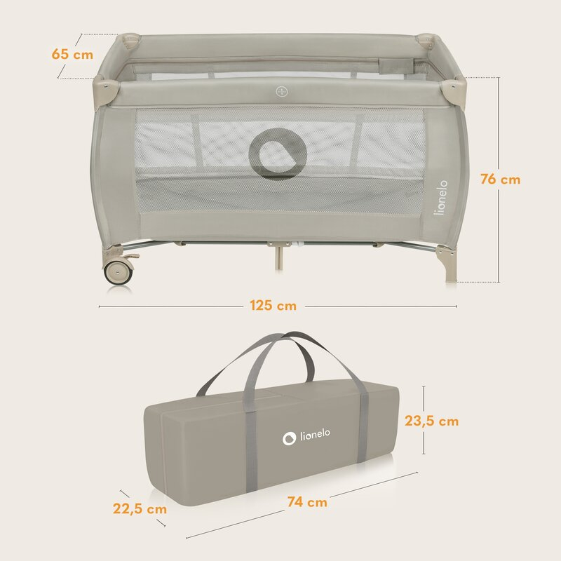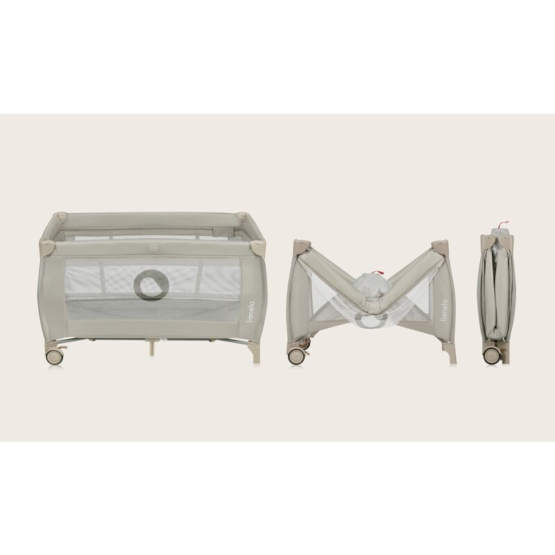 Lionelo Patut pliant, Lionelo, Stefi Plus, Cu doua nivele, Cu intrare laterala cu fermoar, 2 roti, 120 x 60 cm, Conform cu standardul european de securitate EN 716, Bej