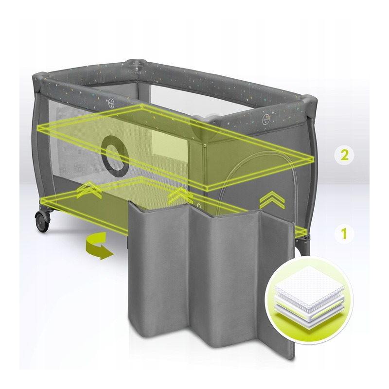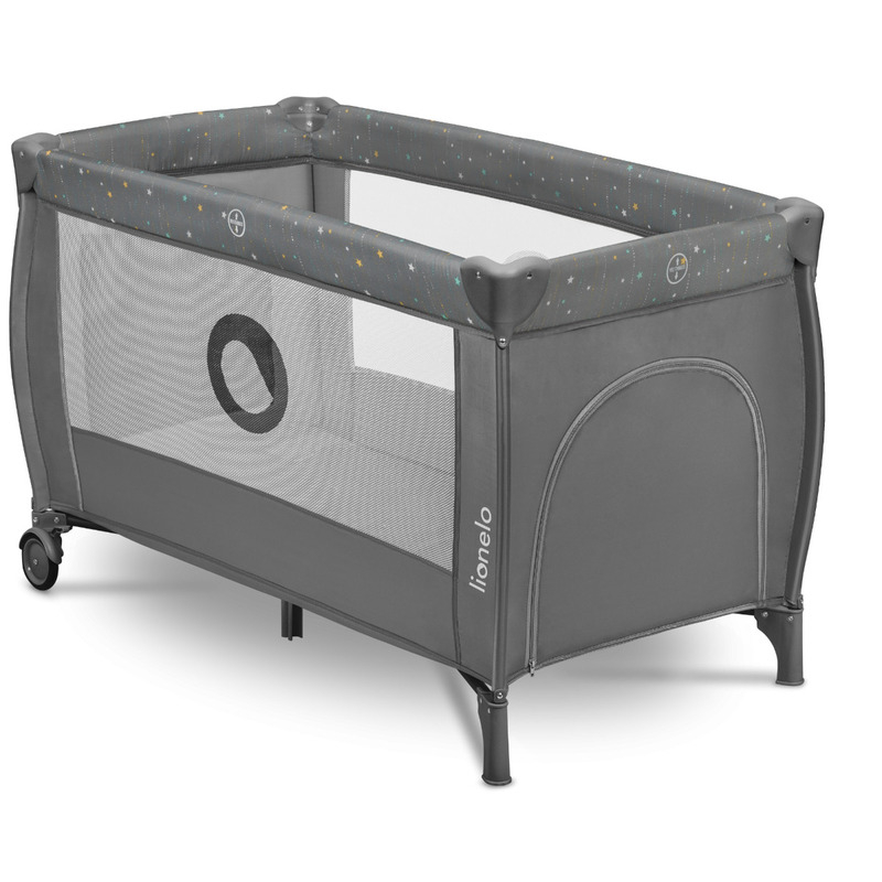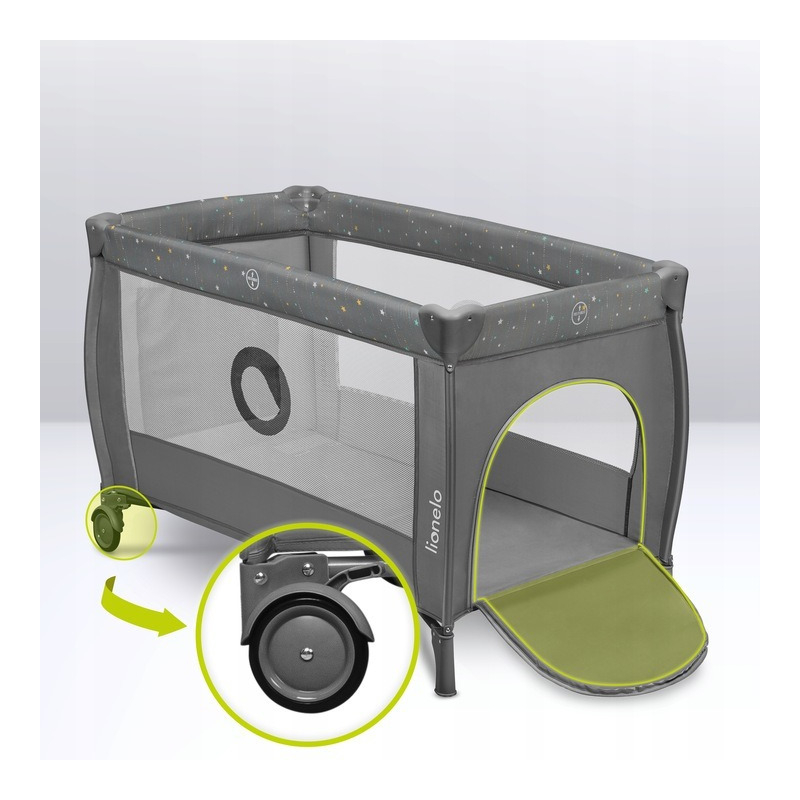 Lionelo Patut pliant, Lionelo, Stefi Plus, Cu doua nivele, Cu intrare laterala cu fermoar, 2 roti, 120 x 60 cm, Conform cu standardul european de securitate EN 716, Gri/ Multicolor
