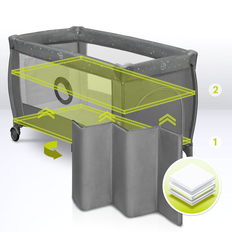 Modelul Stefi Plus este un spatiu sigur si confortabil pentru relaxare si joaca. Dispune de un buzunar practic pentru jucarii si o intrare laterala, ideala pentru copiii mai mari. Aceasta protejeaza spatele parintilor si adauga un plus de distractie. Husa patutului este usor de curatat, astfel incat explorarea lumii sa fie mereu igienica si sigura.