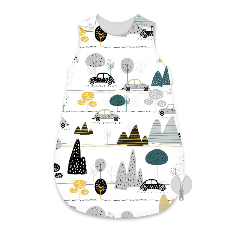 Sac de dormit, MimiNu, Pentru bebelusi, De iarna, Din bumbac certificat Oeko Tex Standard 100, Cu fermoar lateral, Cu capse pe umar, 70 cm, 0 - 6 luni, 2.5 Tog, Childrens Journey Grey