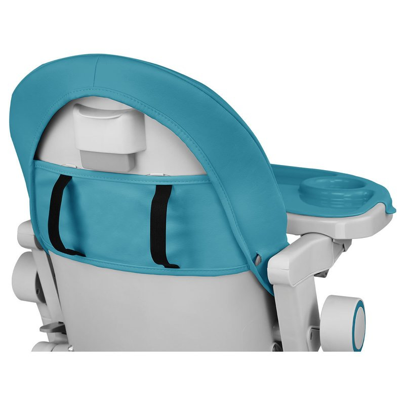 Scaunul Cora este furnizat cu o tava aerodinamica mare, cu un tampon de silicon detasabil, precum si o tapiterie moale din piele ecologica. Setul vine cu o captuseala confortabila (75% bumbac) care ofera copiilor mai mici o adaptare imbunatatita la scaun. Acesta are si un suport pentru servetele in spatele spatarului.