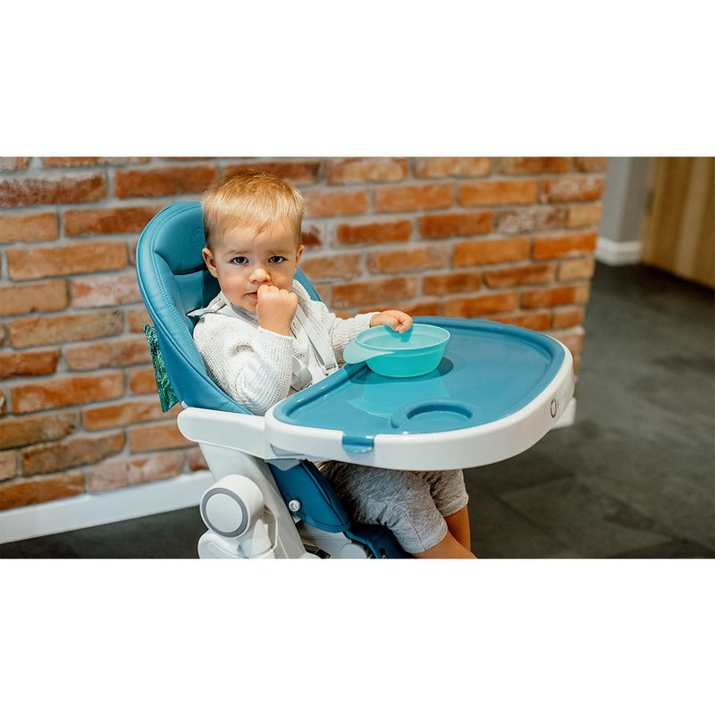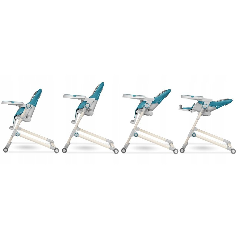 Scaunul inalt Cora are o reglare pe inaltime pe 4 niveluri si va permite sa retrageti tava detasabila pe 2 niveluri. Produsul vine cu o schimbare a pozitiei spatarului pe 3 niveluri.