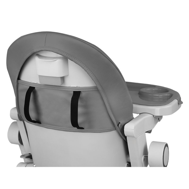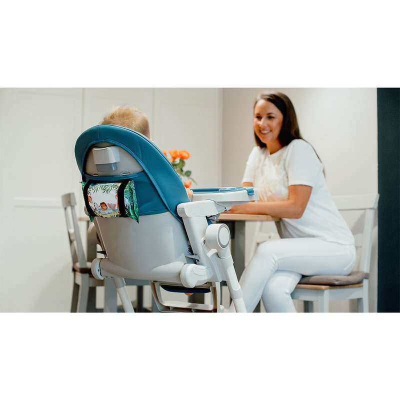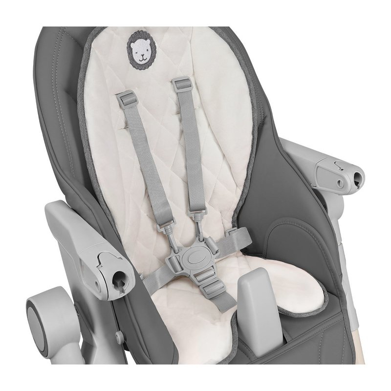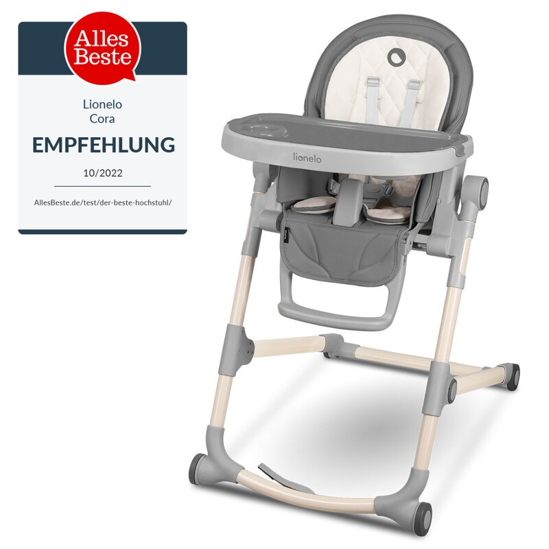 Scaunul Cora este furnizat cu o tava aerodinamica mare, cu un tampon de silicon detasabil, precum si o tapiterie moale din piele ecologica. Setul vine cu o captuseala confortabila (75% bumbac) care ofera copiilor mai mici o adaptare imbunatatita la scaun. Acesta are si un suport pentru servetele in spatele spatarului.