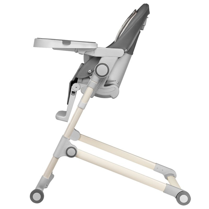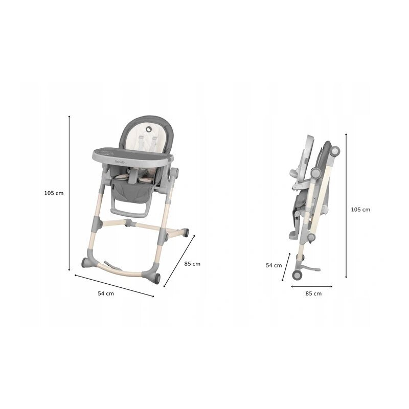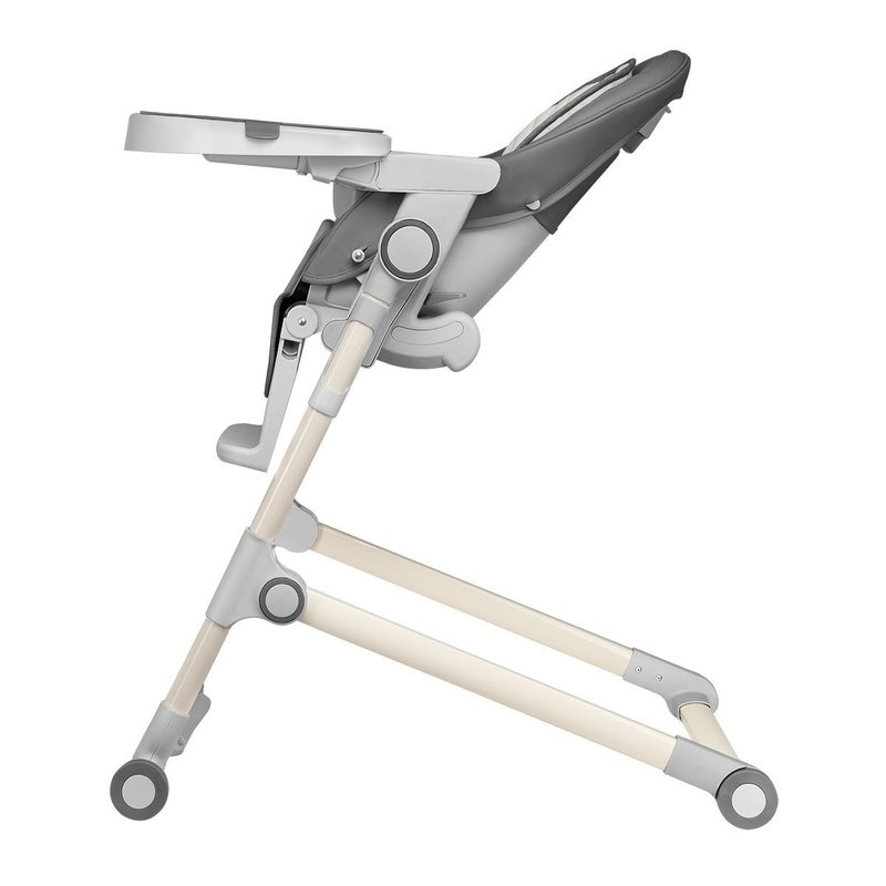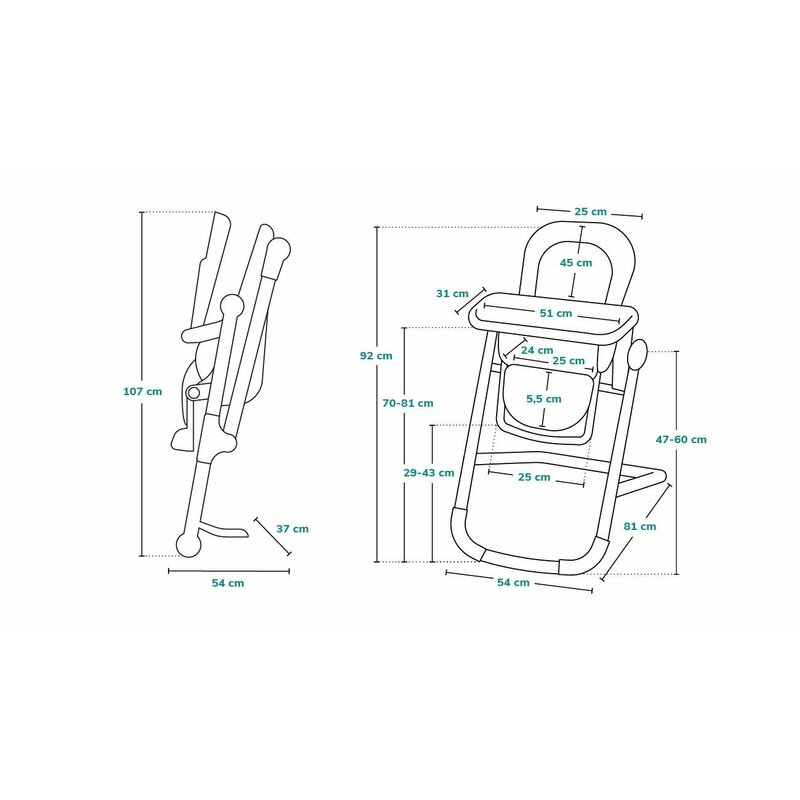 Scaunul inalt Cora are o reglare pe inaltime pe 4 niveluri si va permite sa retrageti tava detasabila pe 2 niveluri. Produsul vine cu o schimbare a pozitiei spatarului pe 3 niveluri.