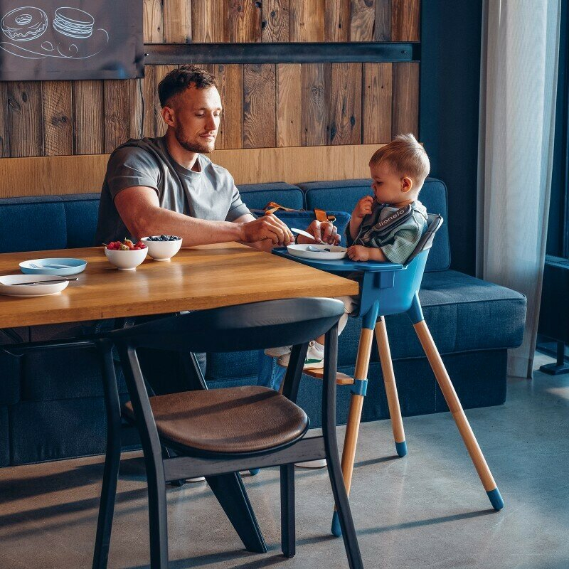 Lionelo Scaun de masa, Lionelo, Koen, Din fag, 2 in 1, Transformabil, Sustine 30 kg, 6 luni+, Conform cu standardul european de securitate EN14988, Albastru