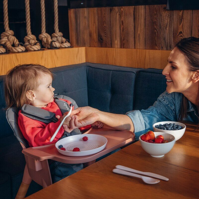 Este o combinatie intre stil minimalist si functionalitate, asigurand in acelasi timp siguranta copilului. Scaunul Lionelo Koen are tot ce ai nevoie cand incepi sa introduci alimentatia solida pentru bebelus - o tava mare, un sezut confortabil si un suport reglabil pentru picioare. Asadar, incepand cu momentul in care micutul incepe sa stea singur (aproximativ la 6 luni), alege un model testat! Datorita picioarelor interschimbabile, este o solutie pe termen lung. Se va dovedi util nu doar ca un inalt scaun de masa, ci si ca o practica scaun pentru masa micutului pana la varsta de 5 ani.