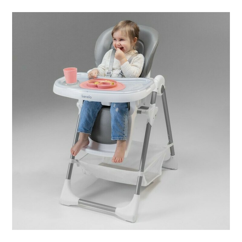 Setul Lionelo Linn Plus include o tava dubla reglabila, a carei strat exterior poate fi detasat si spalat in masina de spalat vase. Tapiteria din eco-piele face ca scaunul sa fie rezistent la murdarie, inundare si abraziune. Textura prietenoasa cu pielea a tesaturii asigura o curatare usoara cu un servetel umed. Scaunul inalt este livrat cu un cos spatios pentru accesorii.