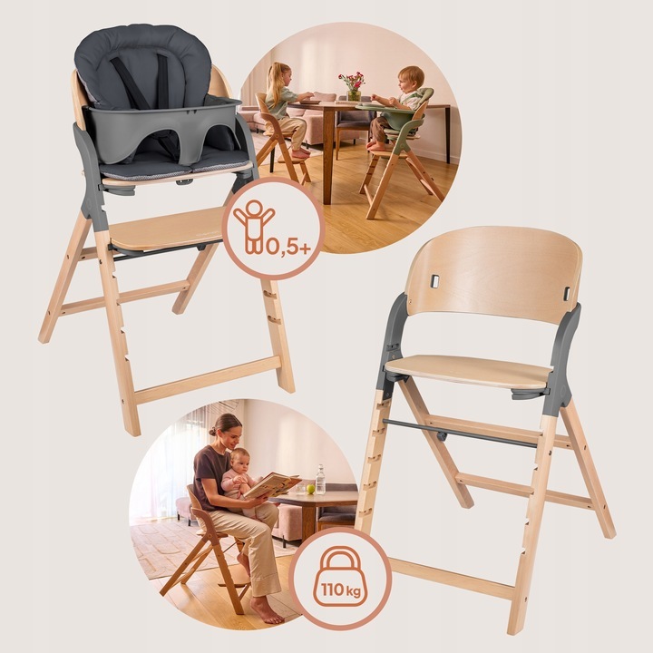 Scăunelul are înălțimea potrivită pentru mesele standard, astfel încât oricine – indiferent de vârstă (chiar și cel mai mic membru al familiei) – va putea participa confortabil la mesele comune.