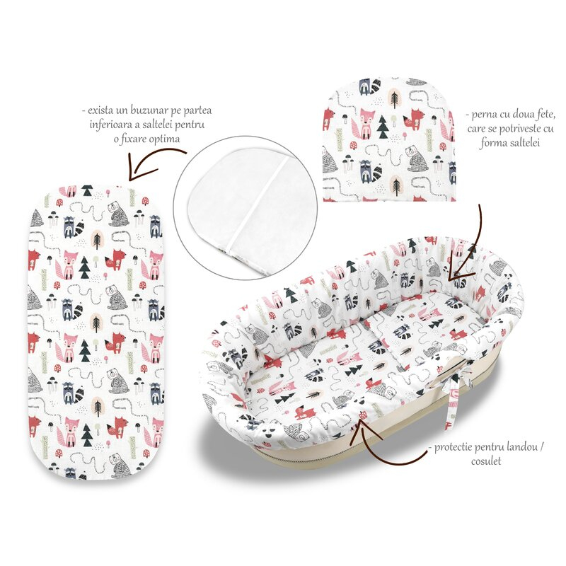 Transforma landoul sau cosuletul copilului intr-un cuib sigur, elegant si extrem de confortabil cu Setul Miminu Fox – un set complet, realizat cu grija din materiale naturale certificate, gandit pentru somnul linistit si sanatos al bebelusului.