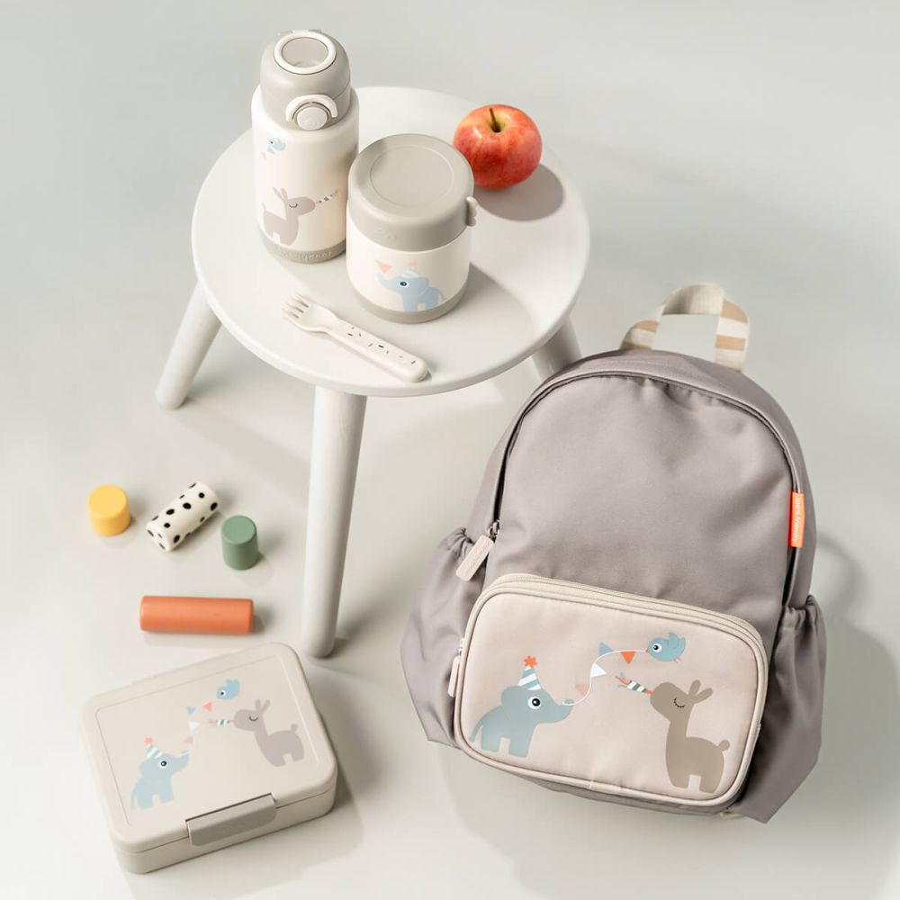 Termos alimente Done by Deer Celebration Sand 300ml este un recipient termo conceput pentru mese calde sau reci pe parcursul zilei. Usor de deschis si inchis de catre cei mici, Termos alimente Done by Deer Celebration Sand 300ml ofera transport sigur si igienic pentru piureuri, supe sau gustari. Designul in nuanta sand, cu Birdee, Elphee si Lalee, face ca Termos alimente Done by Deer Celebration Sand 300ml sa fie preferatul copiilor la gradinita, la scoala si in aer liber.