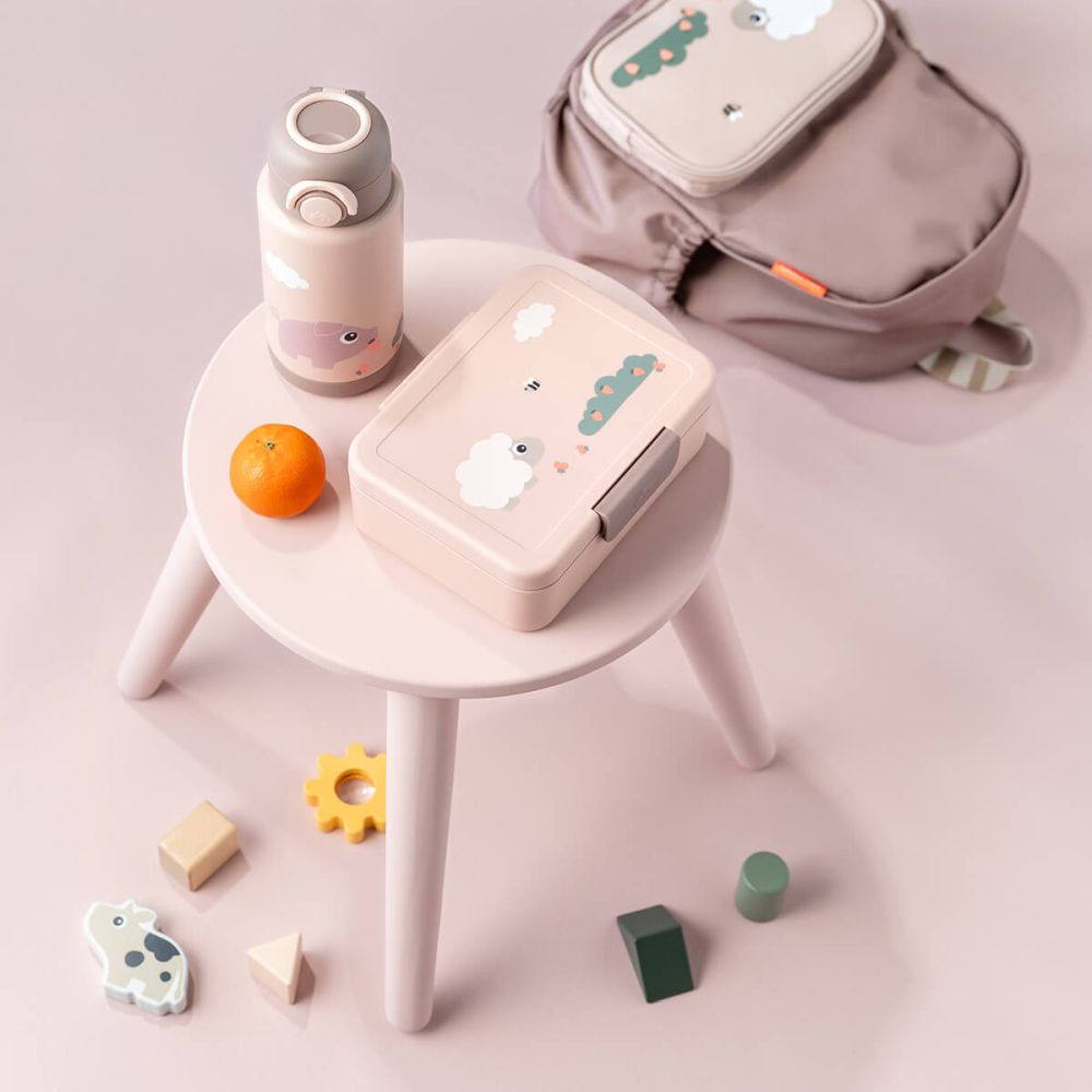 • Culoare roz cu motiv Pigee & Sheepy, prietenoasa pentru cei mici.