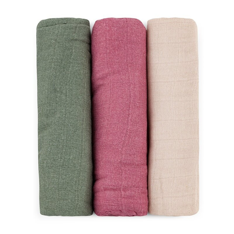 Set 3 scutece, Petite&Mars, Moussy, Din muselina de bambus, Hipoalergenice, 68 x 68 cm, Certificate Oeko Tex Standard 100, Botanic Tones