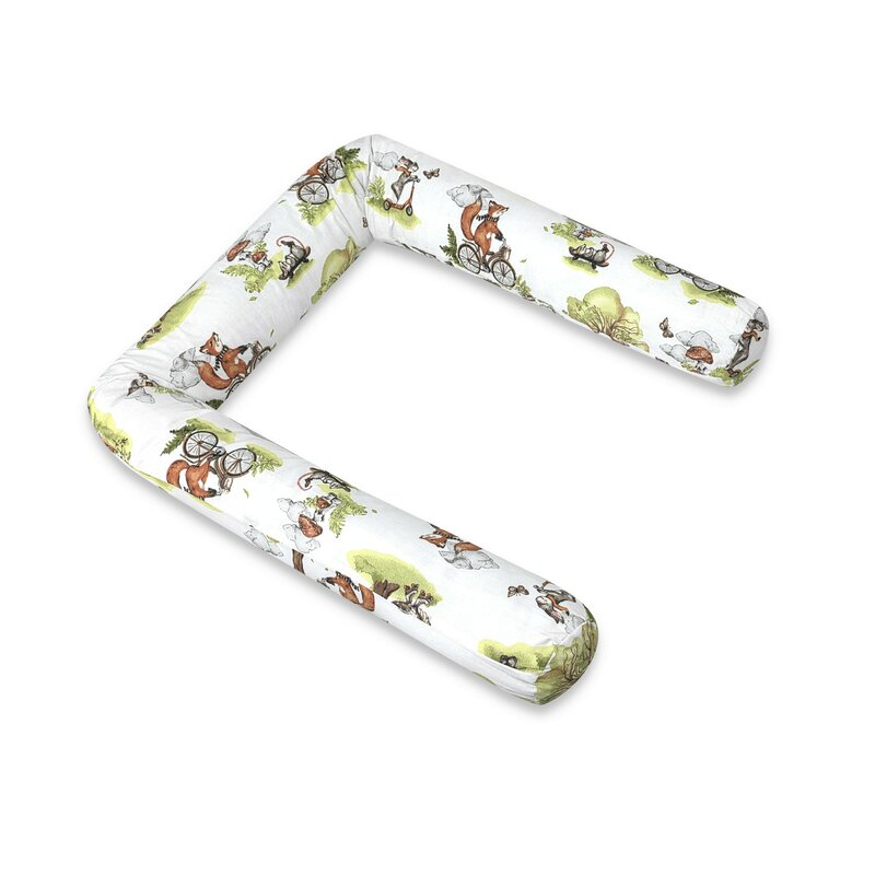Aparatoare pentru patut, Qmini, Tip rulou, Cu husa detasabila, Lungime 180 cm, Din bumbac certificat Oeko Tex Standard 100, Fox on bikes Natural