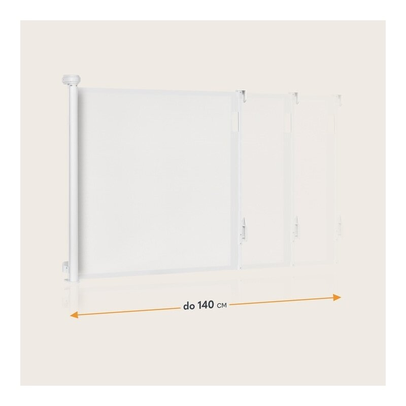 Bariera de siguranta Thea este potrivita pentru montarea pe diferite tipuri de pereti. Setul de produse include 3 seturi de elemente de fixare pentru instalare in diferite locuri. Functia Clip On / Off permite comutarea fara probleme a plasei dintre camere. Bariera se intinde pana la 140 de centimetri. Produsul este fabricat dintr-un material sintetic durabil, rezistent la razele UV si ploaie. Datorita acestui fapt, poarta poate fi utilizata nu numai in interior, ci si in exterior.