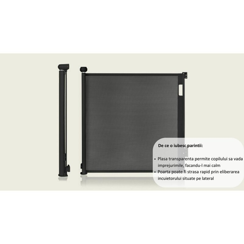 Bariera nu are prag, ceea ce inseamna ca nu exista riscul ca un copil sau un parinte sa se impiedice.