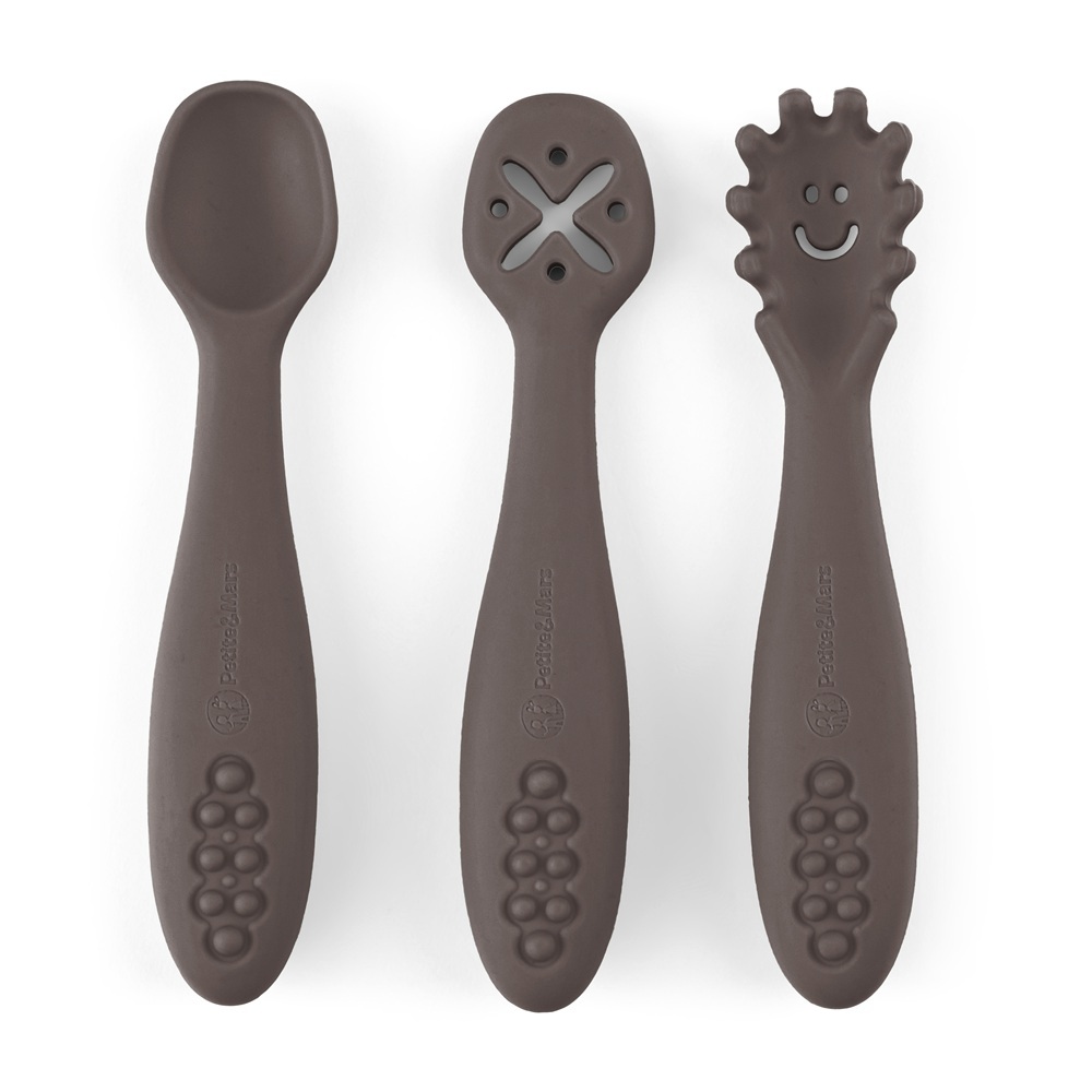 Petite&Mars Set 3 lingurite, Petite&Mars, Take&Match, Din silicon, Diverse forme, Pentru supa, paste, alimente usoare, Dezvolta simturile si abilitatile senzoriale, Adecvate pentru masina de spalat vase, Fara BPA