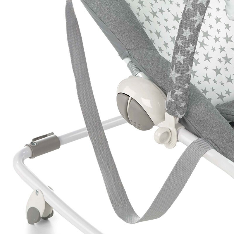 - Spatar reglabil: Hamacul este dotat cu mai multe pozitii de spatar, care permit adaptarea pozitiei bebelusului in functie de nevoile sale – de la pozitia de repaus total pana la o pozitie usor ridicata pentru a observa lumea din jur.