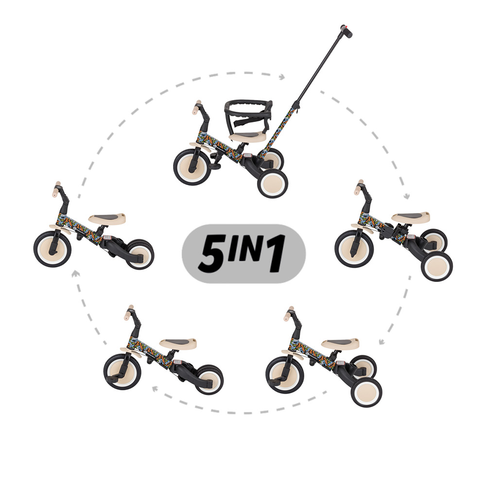 ✔️ O caracteristica unica a bicicletei este multifunctionalitatea sa, permitandu-va sa o utilizati in cinci moduri diferite, in functie de varsta si abilitatile copilului: